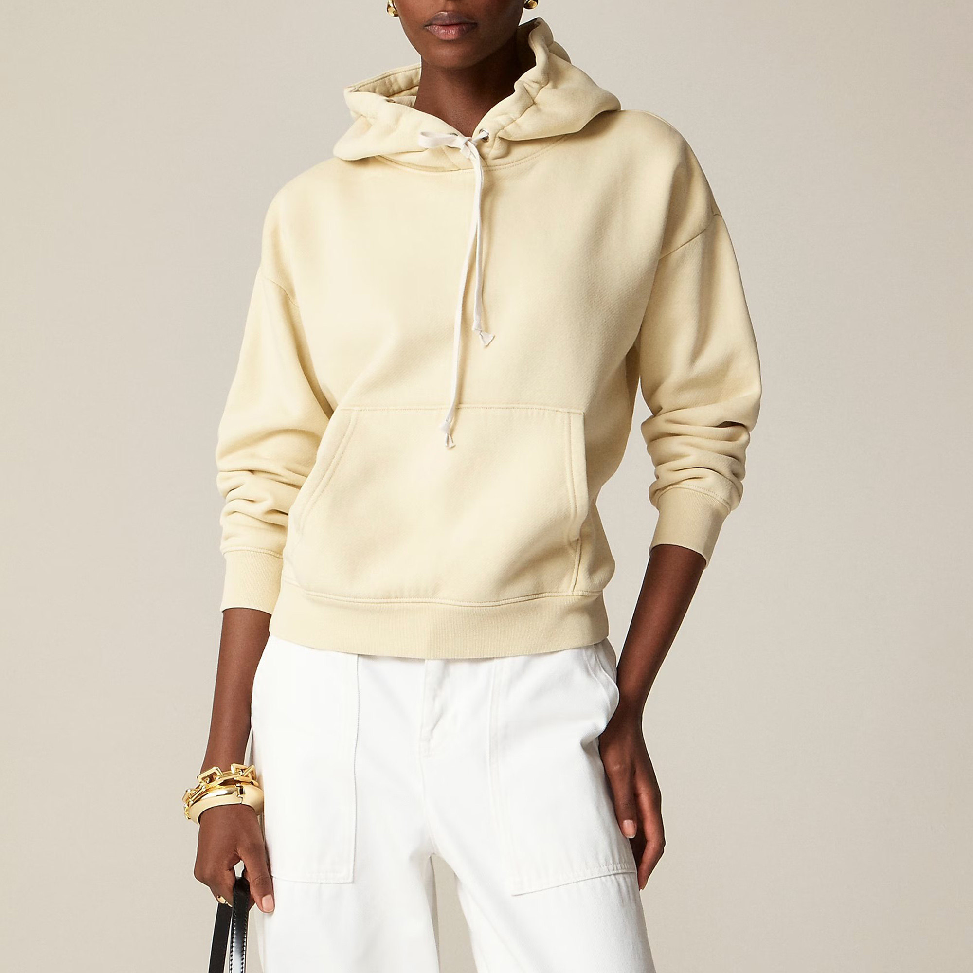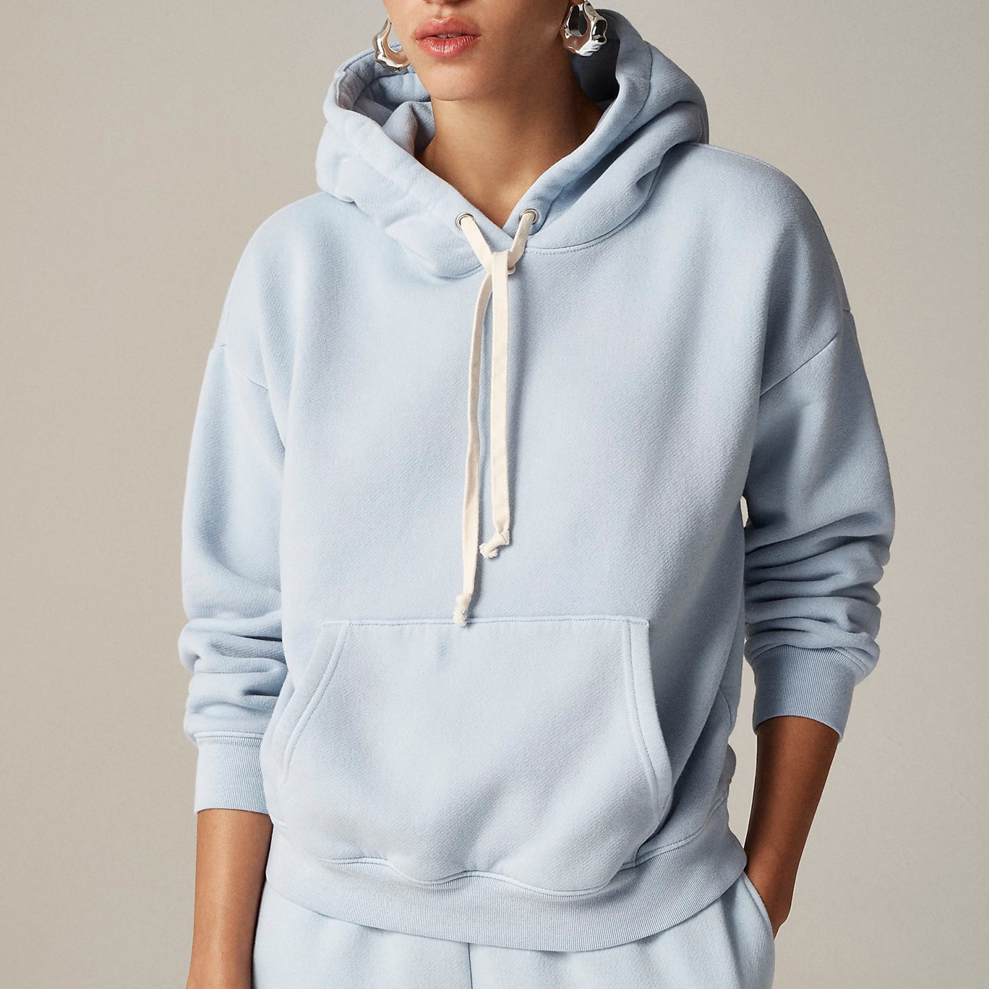 This style features an adjustable drawstring at the collar, a kangaroo pocket and, of course, a hood.
