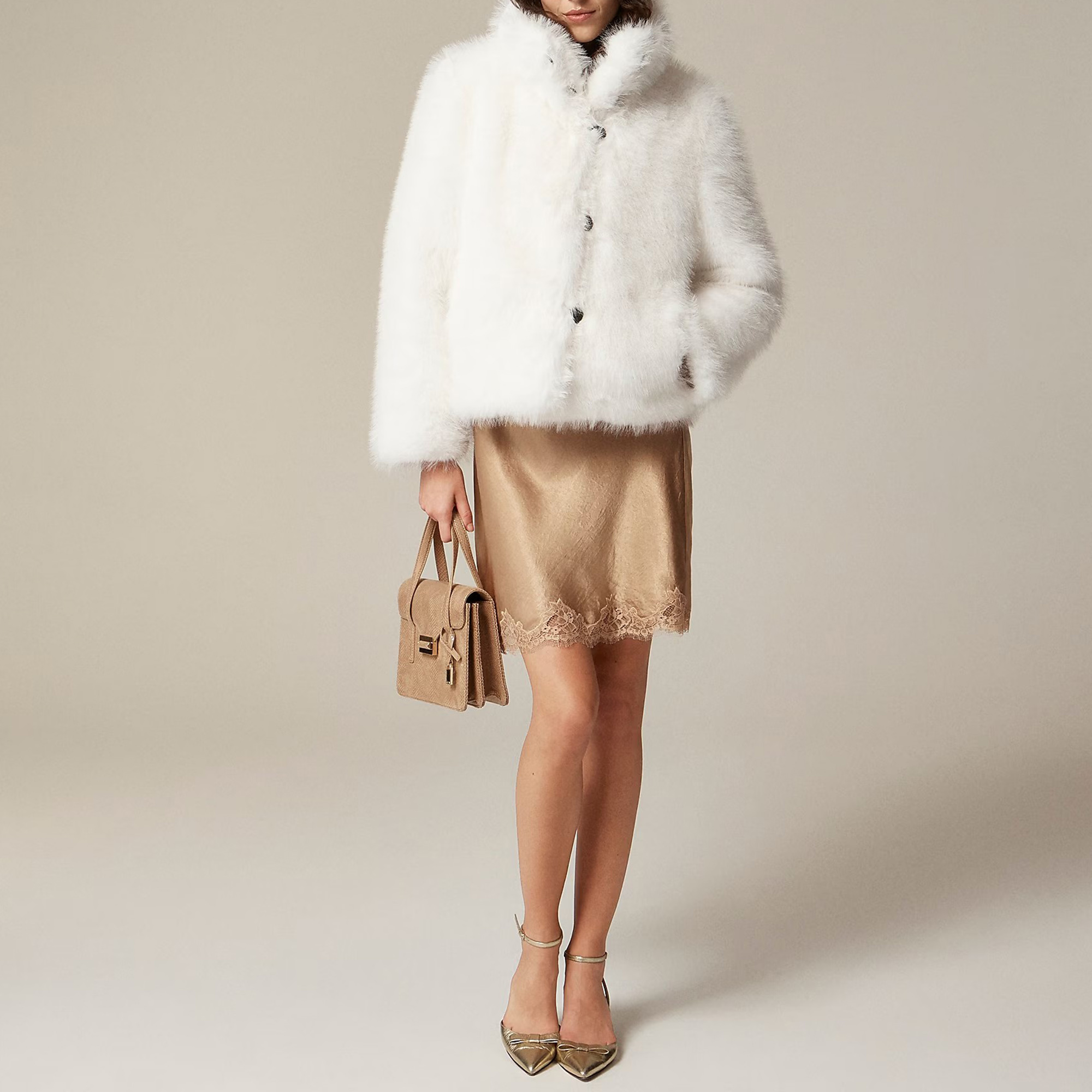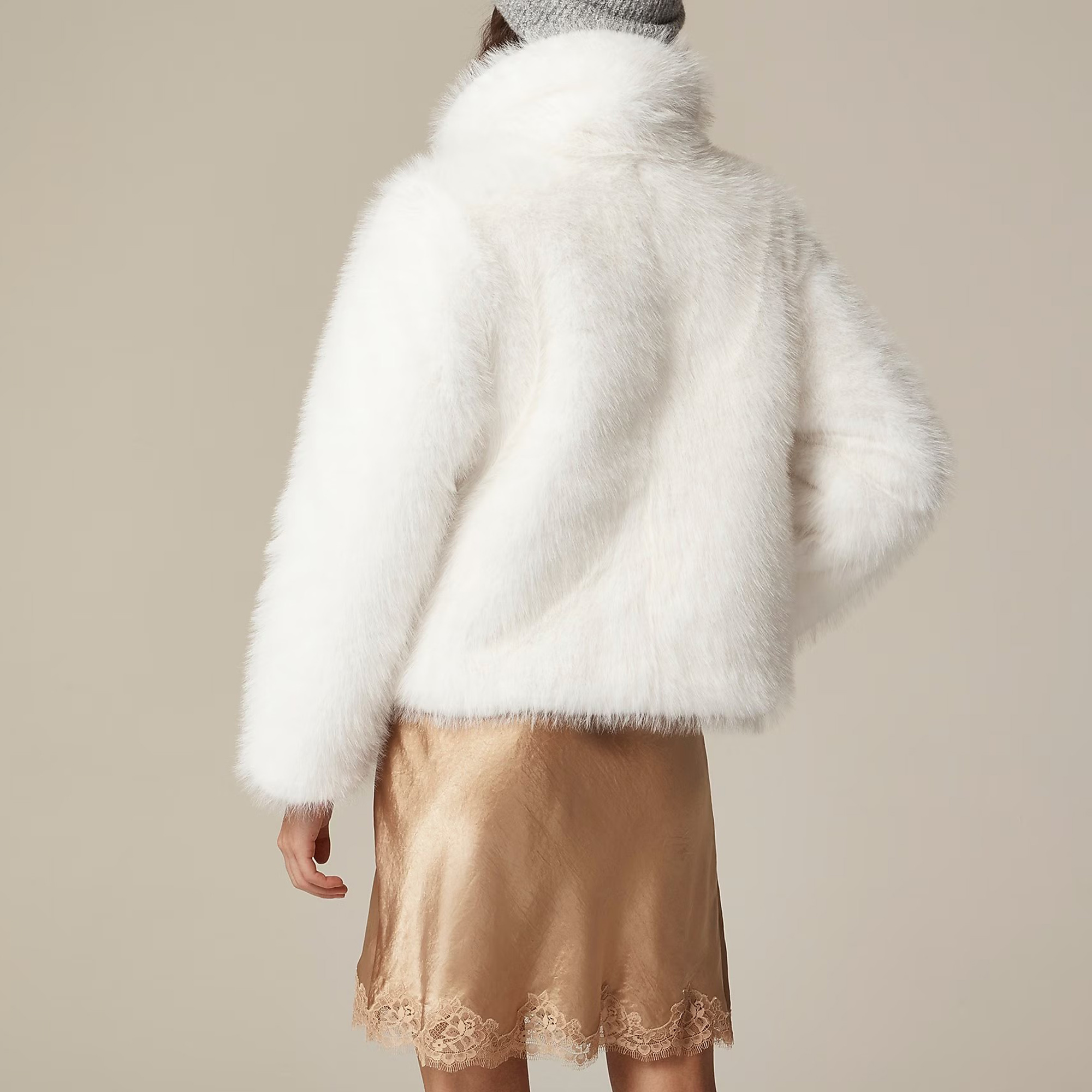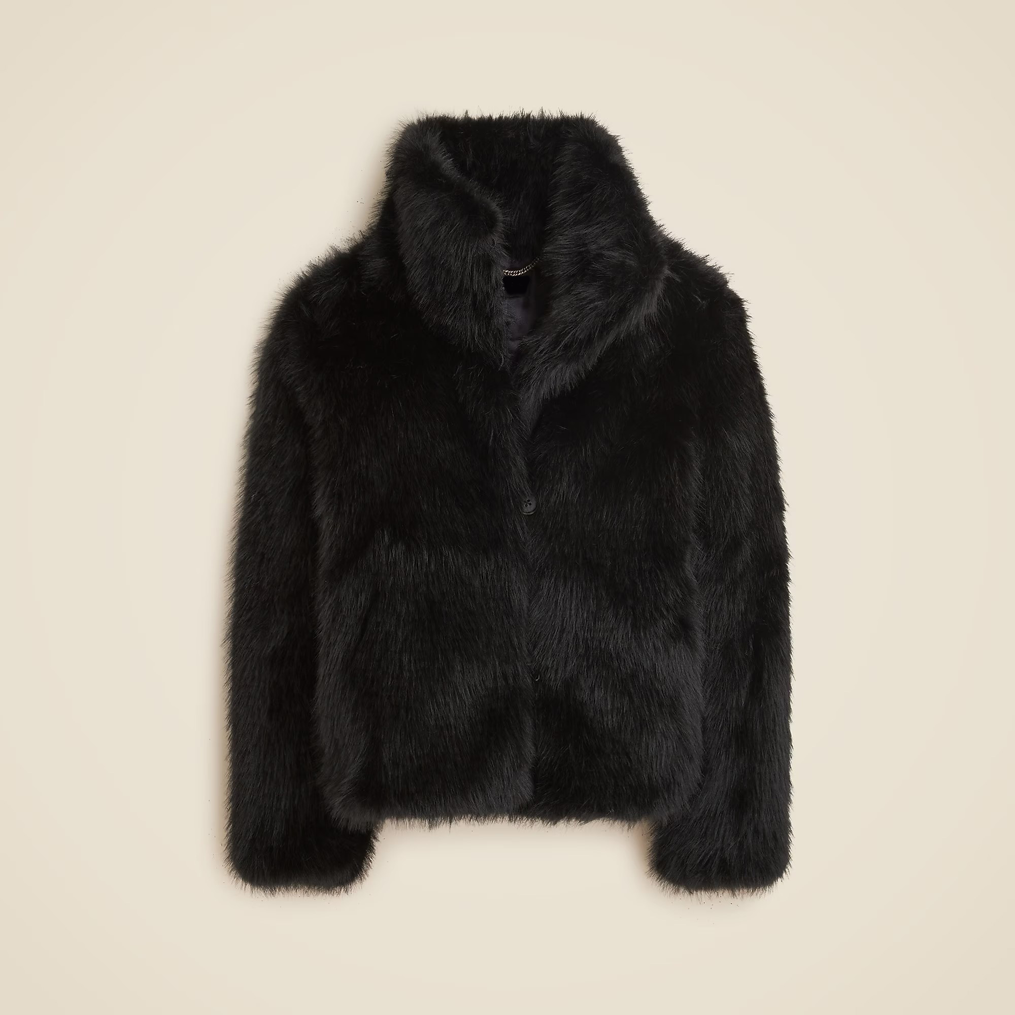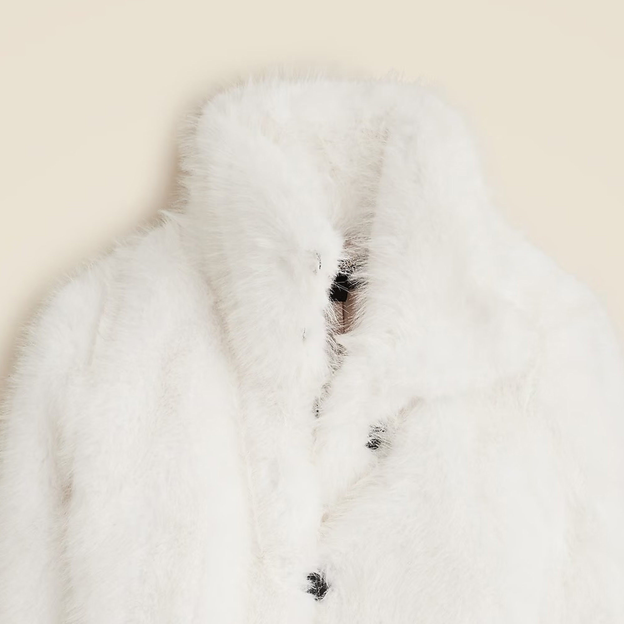 One of our favorite ways to make a statement: this luxe, faux-fur layer with a relaxed shape and a pillowy collar that you can wear up around your neck or folded down.