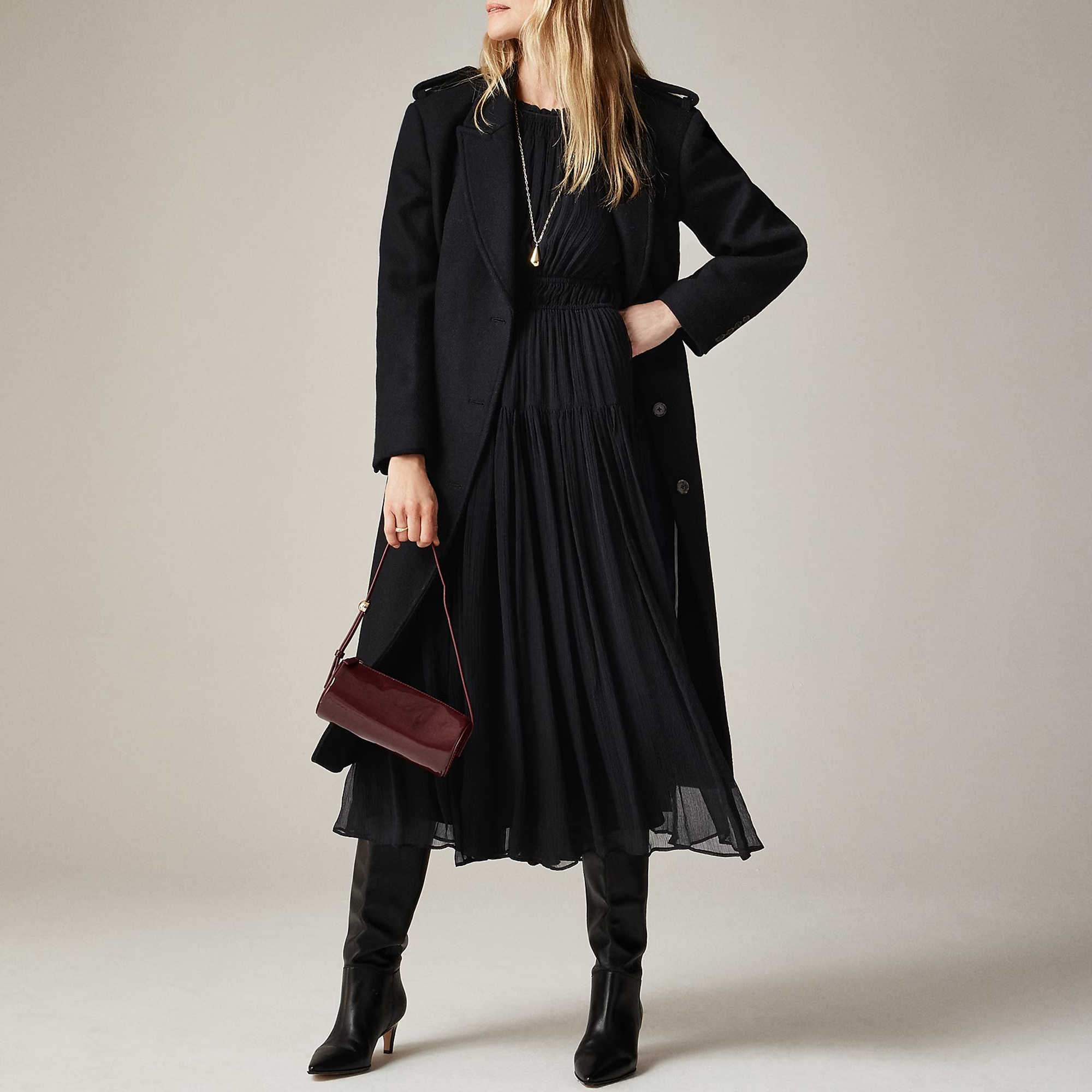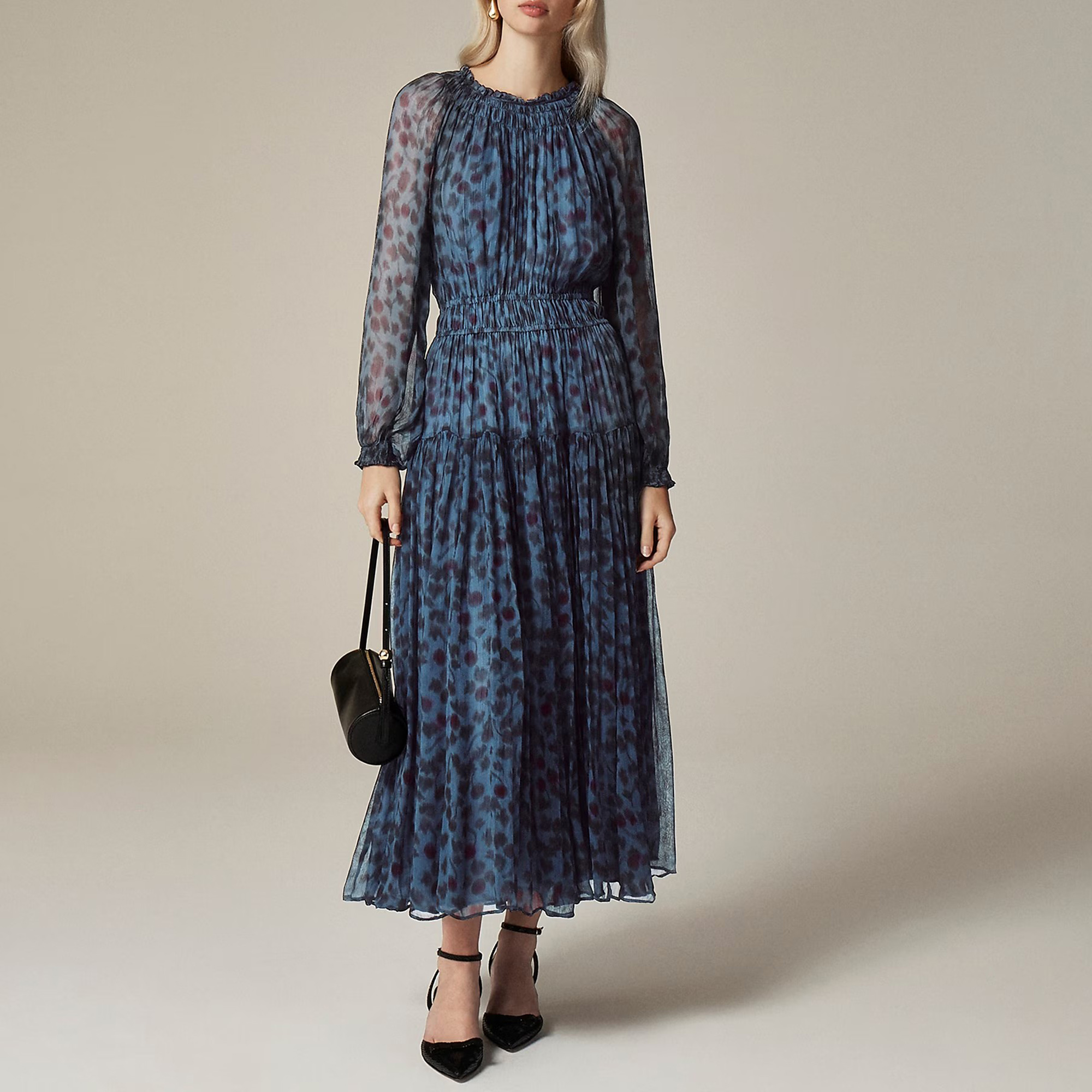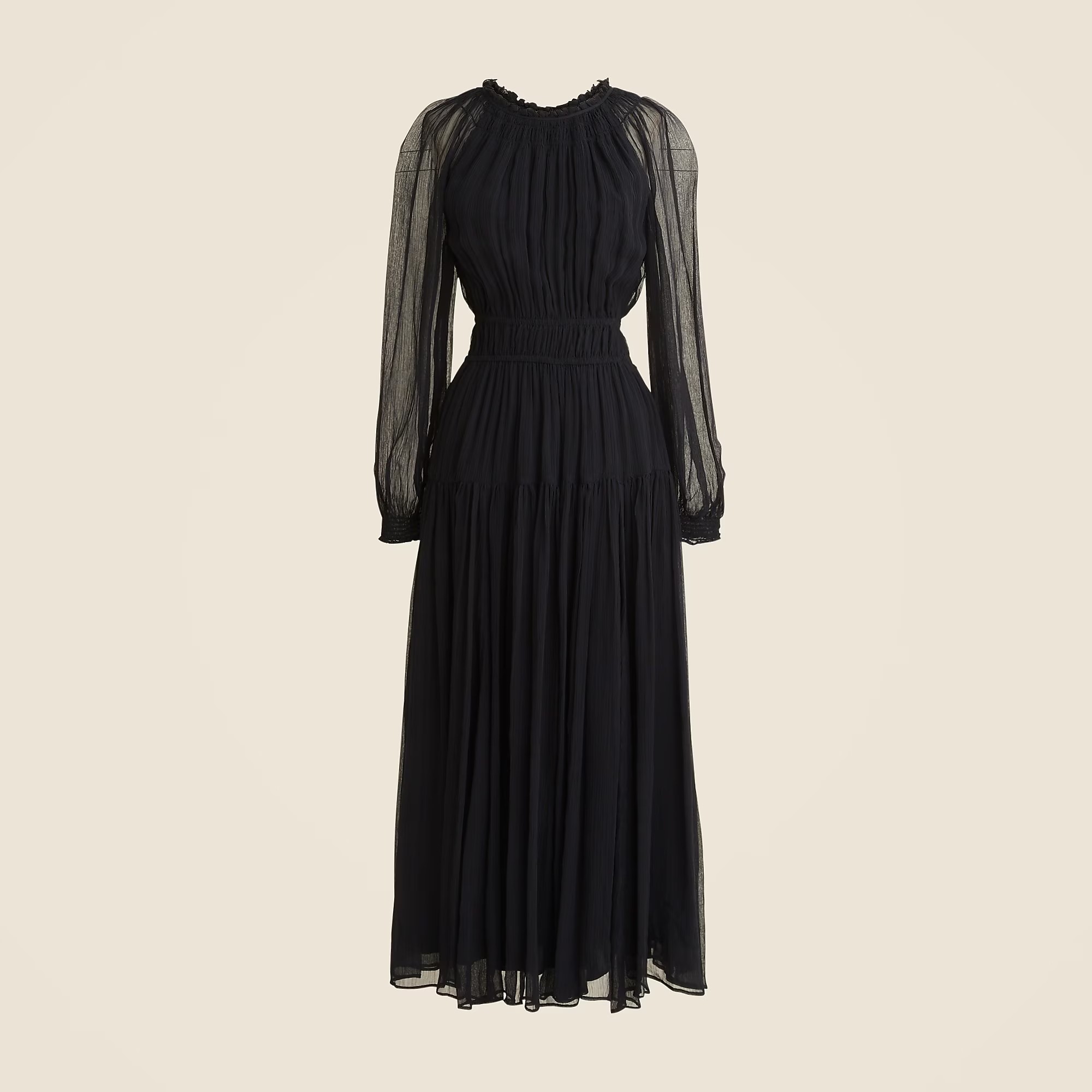 With sheer sleeves, a slip lining and gathered details at the neckline and waist, this swishy silhouette can be dressed up or down for everything on your agenda. Plus, it's crafted in our gauzy, lightweight crinkle chiffon that always looks good however you store it.
