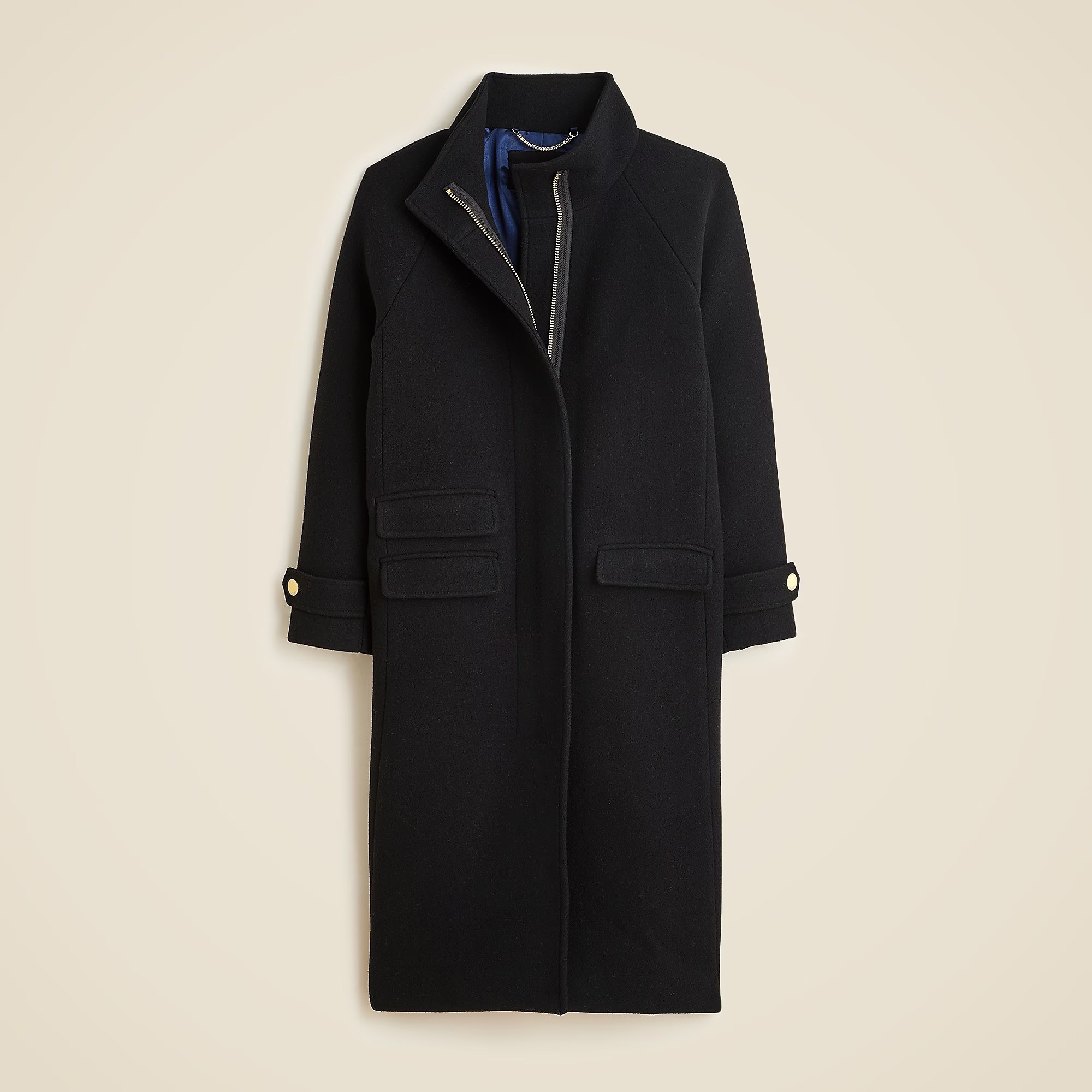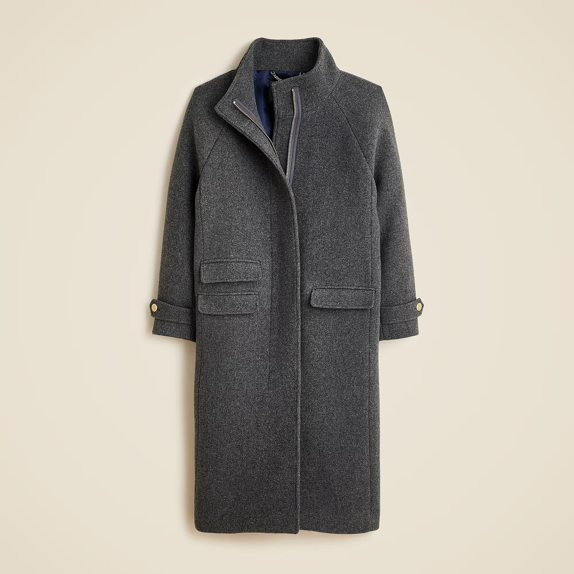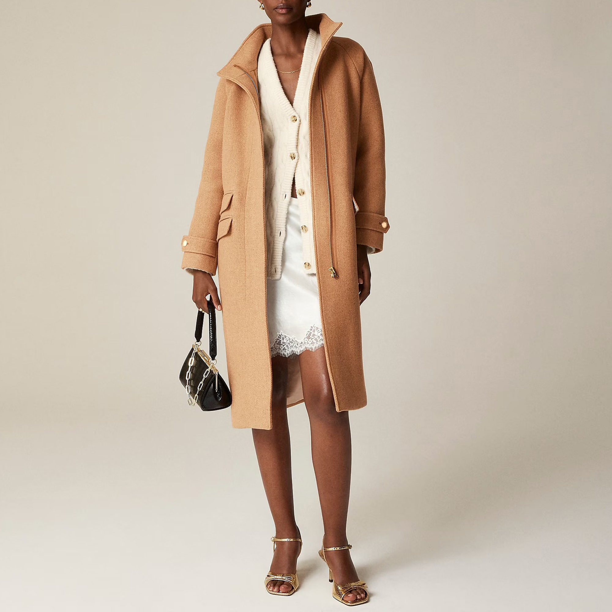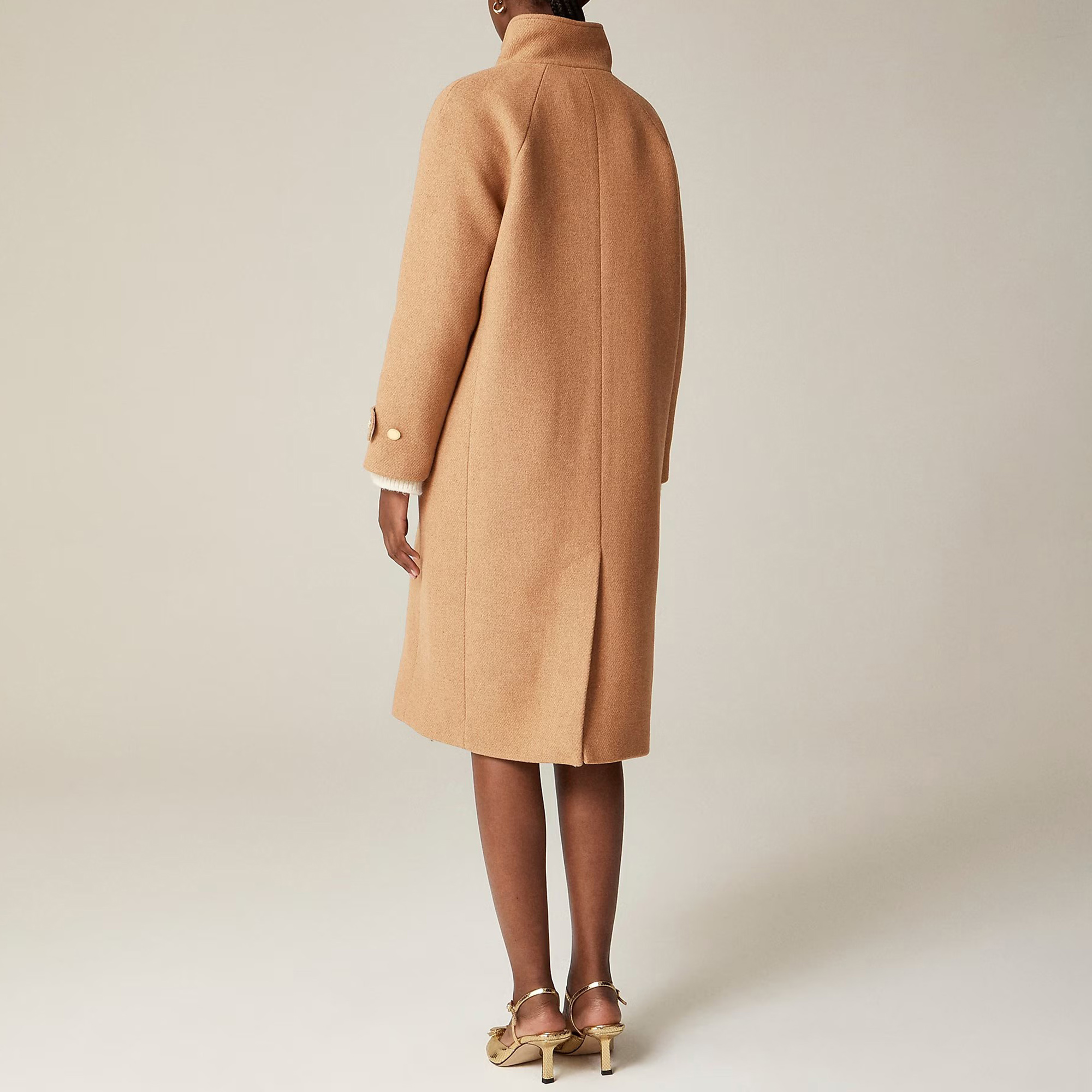 Inspired by our cocoon fit, this one comes in a below-the-knee length with plenty of polished details like a hidden zipper closure, signature gold crest buttons and a standing collar to keep the cold at bay.